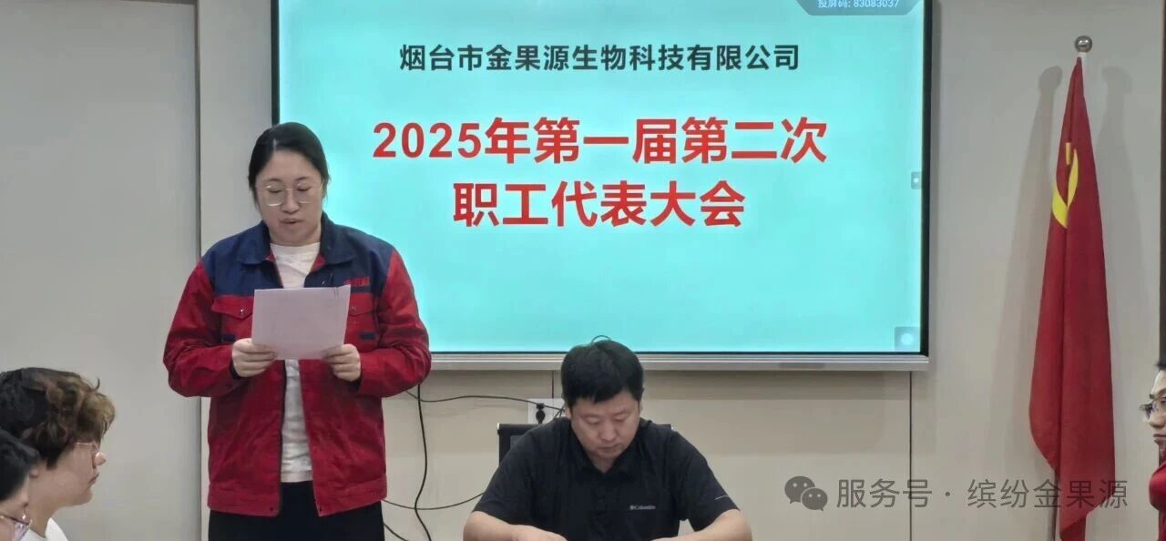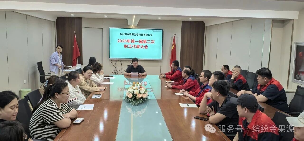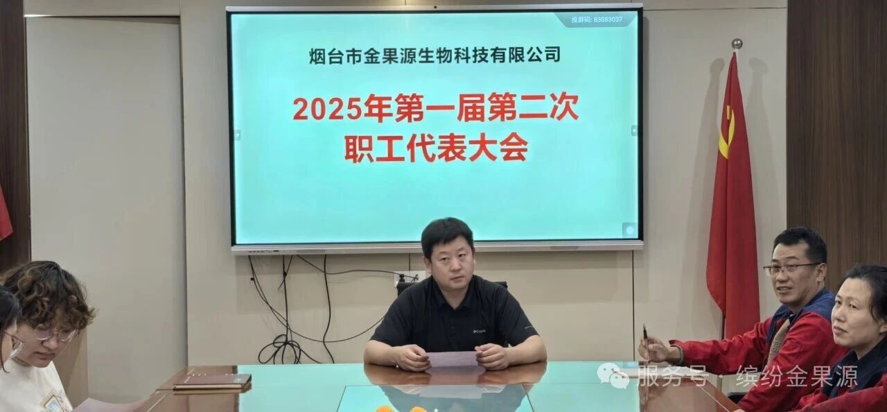 为持续推进企业民主管理,充分发挥职工代表参与公司决策、监督和维护职工合法权益的重要作用,2025年10月8日下午18:30,烟台市金果源生物科技有限公司在公司二楼会议室隆重召开了2025年第一届第二次职工代表大会。公司工会主席团成员、工会委员会成员及全体职工代表齐聚一堂,共商企业发展大计。